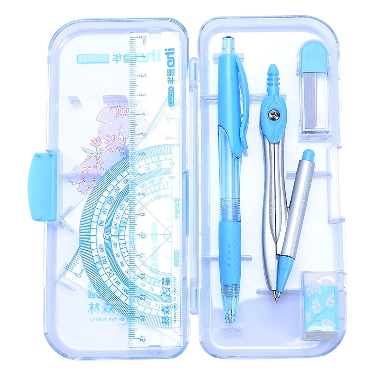 Là một bộ dụng cụ học tập vô cùng hữu ích dành cho các em học sinh khi học môn Toán. Sản phẩm bao gồm nhiều vật dụng khác nhau như compa, eke, thước, gô, hỗ trợ tối đa trong quá trình học tập của các em. Compa: được làm từ kim loại chắc chắn, giúp dễ dàng vẽ những hình tròn khác nhau.####Xuất xứ: Việt Nam